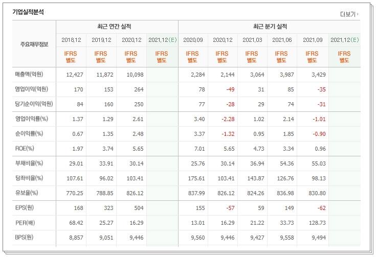 2018년 170억원 이후 2019년은 153억원, 그리고 작년 2020년은 264억원 이익 발생됐습니다. 2018년과 비교해보자면 대략 1.5배 정도 상승한 흐름입니다. 당기순이익 또한 2020년 가장 증가해서 218년 84억원 이익발생과 비교해보자면 대략 2배 정도 성장한 흐름입니다. 다만 아쉬운 점은 올해는 3분기 흐름이 적자로 유지되서 4분기 흐름을 지켜봐야될 듯 싶습니다. 하지만 일단 중국의 수출 제한으로 비료 값은 올라갈 것이므로 내년 상반기 흐름이 좀 더 좋게 나올 것으로 전망됩니다.