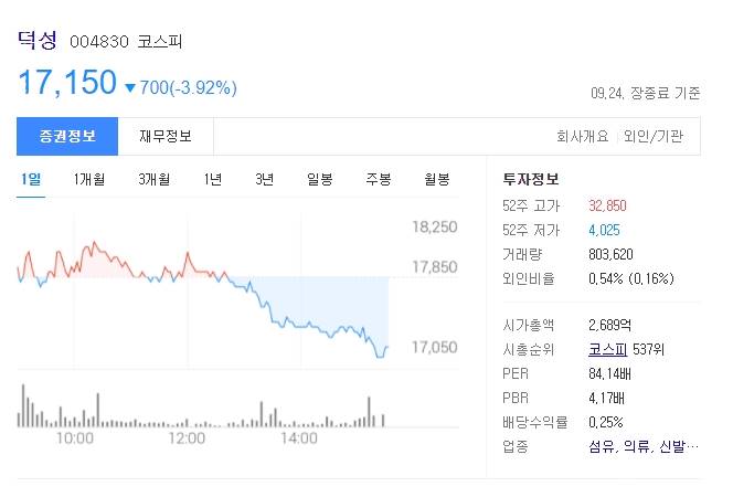 덕성 주가 전망 알아보겠습니다. 덕성은 윤석열 전 검찰총장 관련주에도 속한 기업입니다. 윤석열 관련주에 속하면서 주가가 올라가는 패턴을 보여주기도 했지만 기업 자체의 실적 등을 알아보면 꽤 탄탄한 기업임을 알 수 있습니다. 해당 기업에 대해 알아본 후 현재 주가에 영향을 미칠만한 뉴스에는 무엇이 있는지 아래에서 살펴보겠습니다.