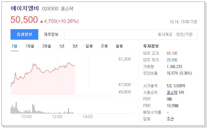 현재 시가총액은 5조 3838억원으로 시총순위는 코스닥 5위에 해당합니다. 현재 동사에 관심있는 분들은 20일 백신 긴급 승인 여부 뉴스 내용을 잘 참고해주시기 바랍니다. 이상 에이치엘비 주가 전망이었습니다.