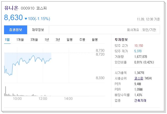 두 번째 요소수 관련주는 유니온입니다. 동사는 1964년에 설립되었으며, 연산 18만톤 규모의 백시멘트 및 용융알루미나를 생산하고 있습니다. 또한 포항공장에서는 내화물 원재료인 알루미나시멘트와 각종 특수시멘트를 생산하고 있습니다.