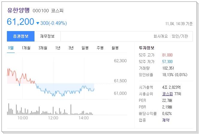 유한양행 주가 전망 알아보도록 하겠습니다. 기업에 대한 간단한 소개 및 현재 주가에 영향을 미칠만한 뉴스 및 매출, 차트에 대해 아래에서 자세히 알려드리겠습니다.