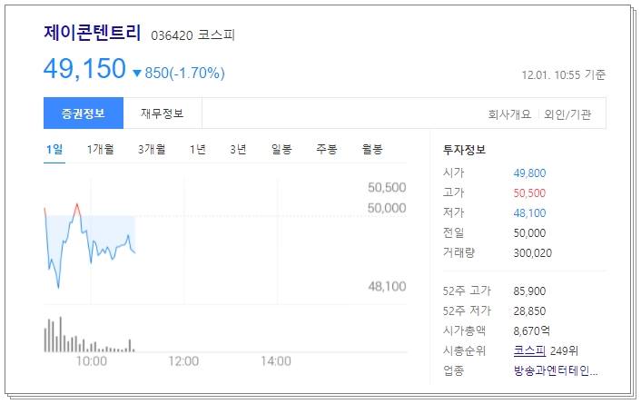 [롤러코스터급 제이콘텐트리 주가 흐름 기사 바로 보기]