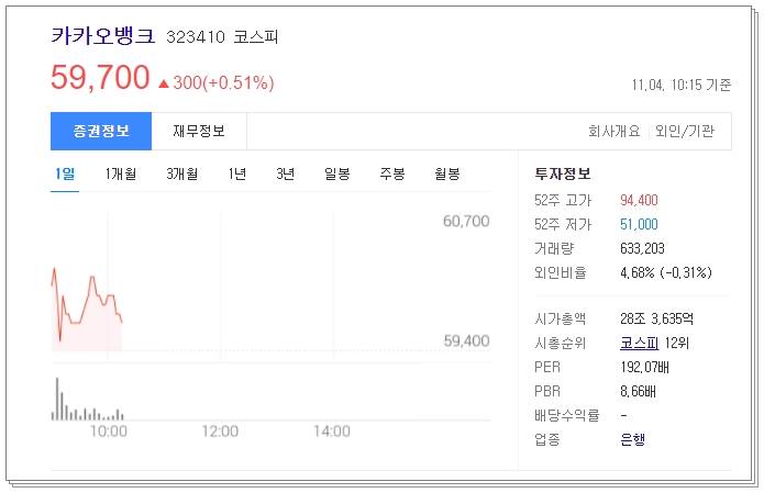 카카오뱅크 주가 전망 알아보도록 하겠습니다. 11월 3일 같은 계열사인 카카오페이 상장일이었습니다. 카카오페이 상장일에 카카오뱅크의 주가는 하락하는 추세였습니다. 현재 흐름은 어떠하며 매출은 어떤 흐름인지 아래에서 자세히 알려드리겠습니다.