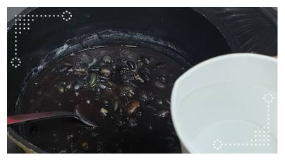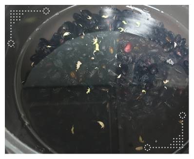 팁) 서리태 콩을 끓이고 났을 때 검은 물이 나옵니다. 만일 이번에 너무 많이 콩을 불려서 콩이 남았다면 아깝게 버리지 말고 불린 콩을 지퍼백에 넣고 좀 전에 나왔던 검은 물을 그 지퍼백 안에 함께 넣어서 냉동 보관해주면 좋습니다.